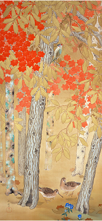 荒木十畝《四季花鳥の内 秋(林梢文錦)》